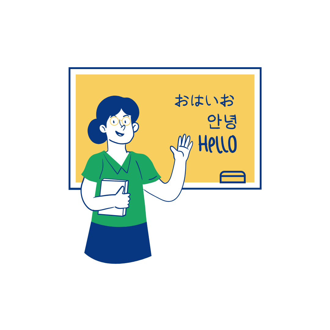日本語が母国語でない人に対し日本語を教えるのが主な仕事になります。